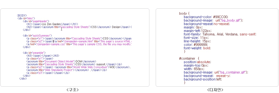 디자인 수정 작업 시 CSS 파일만 수정하면 전반적으로 적용되므로 작업 시간을 단축시킬 수 있습니다.